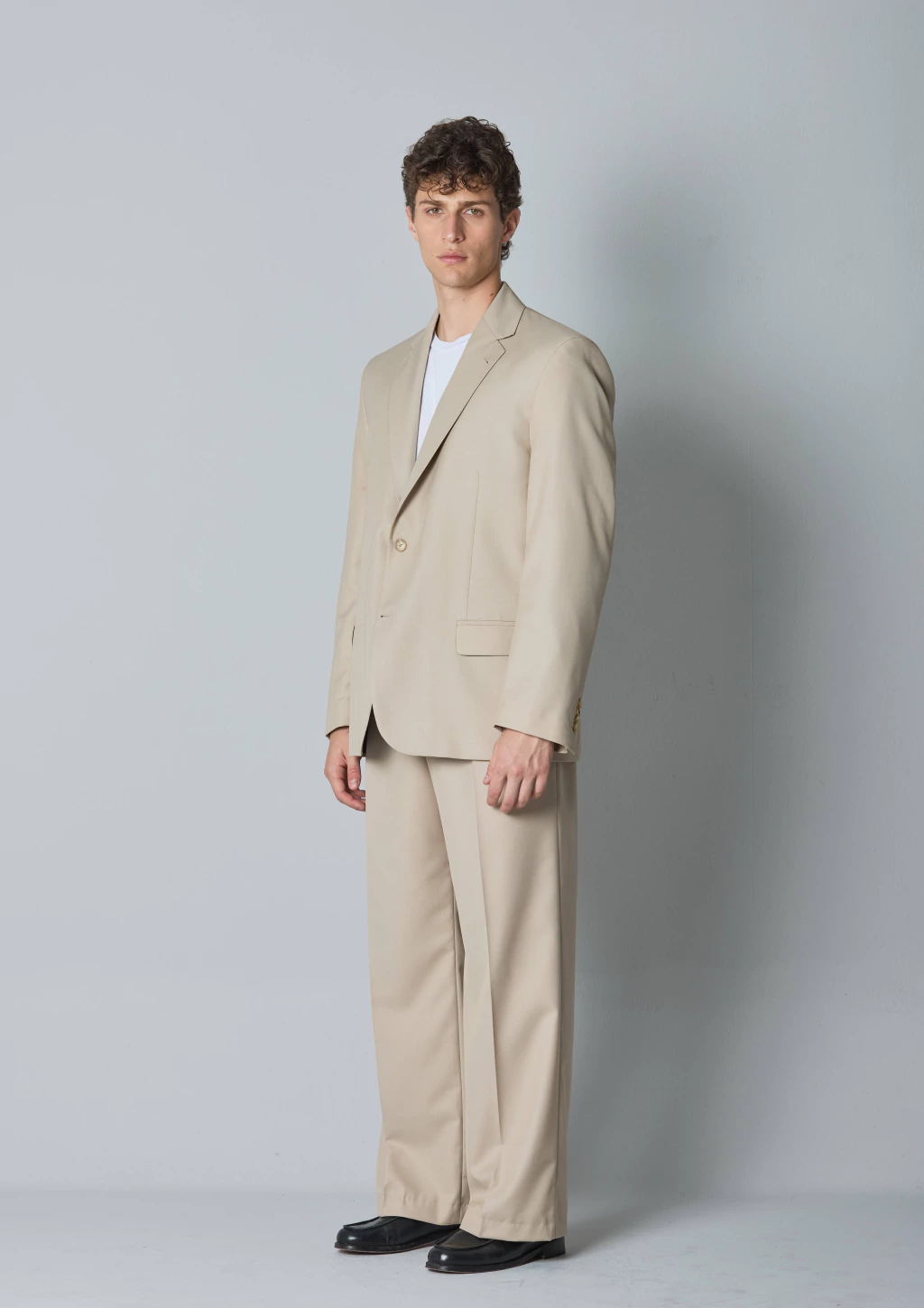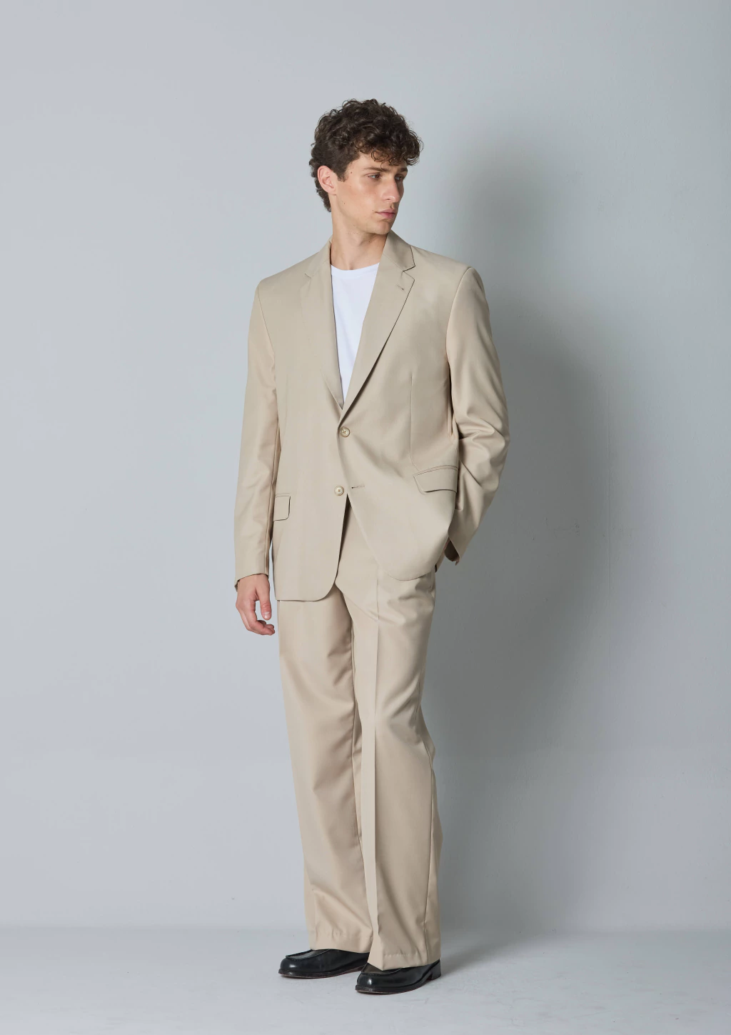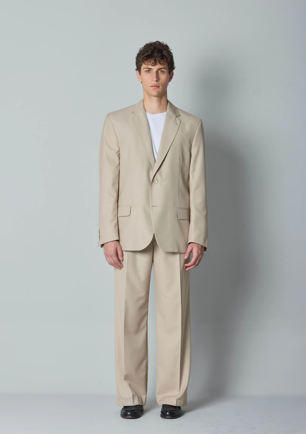 Blazer moldería oversize con hombreras. Confeccionado en una mezcla de poliéster y viscosa que aporta fluidez, resistencia y un leve brillo opaco. Cuenta con solapa clásica, dos botones frontales, bolsillos con tapa y forrería interna. Su fit relajado y limpio lo convierte en una prenda versátil, ideal para usar tanto formal como en ocasiones más descontracturadas. Esta prenda nace de la inspiración de la tipología clásica de un saco de sastrería, aplicándole el toque distintivo de la marca.