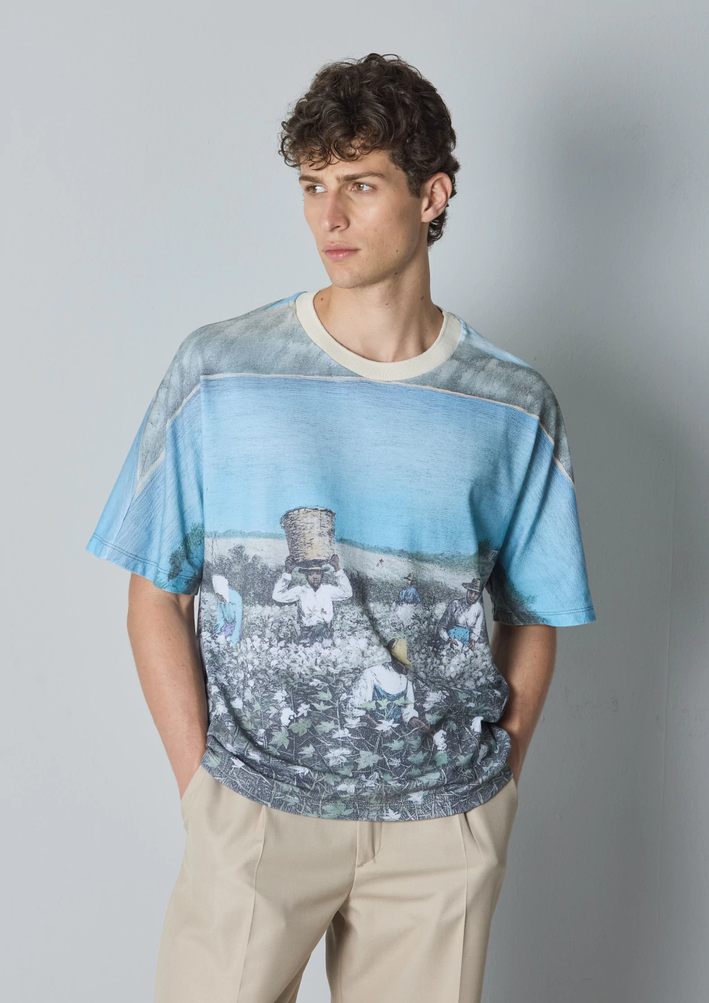 Remera molderia dolman confeccionada en pique 24.1 100% algodón full estampado digital. Cuello tejido, costuras al tono de la prenda. Cuenta con un proceso de suavizado, asegurando que sus medidas no sufran modificaciones con el uso y otorgándole una mano soft.